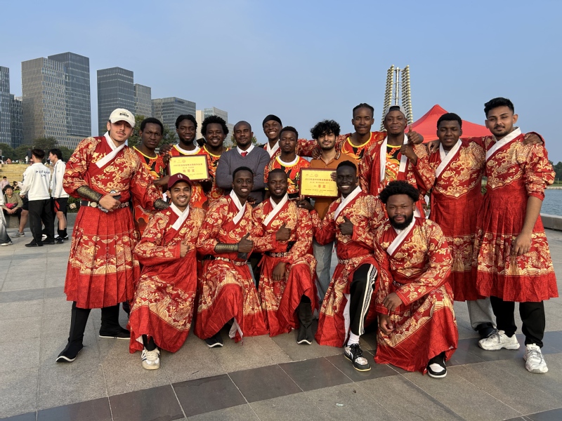 我院留学生舞龙舞狮队表现出色,凭借扎实功底和默契配合脱颖而出,斩获成人组传统南狮特等奖及成人组舞龙自选套路一等奖。