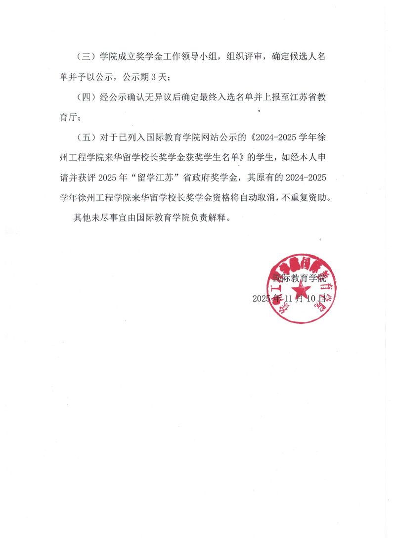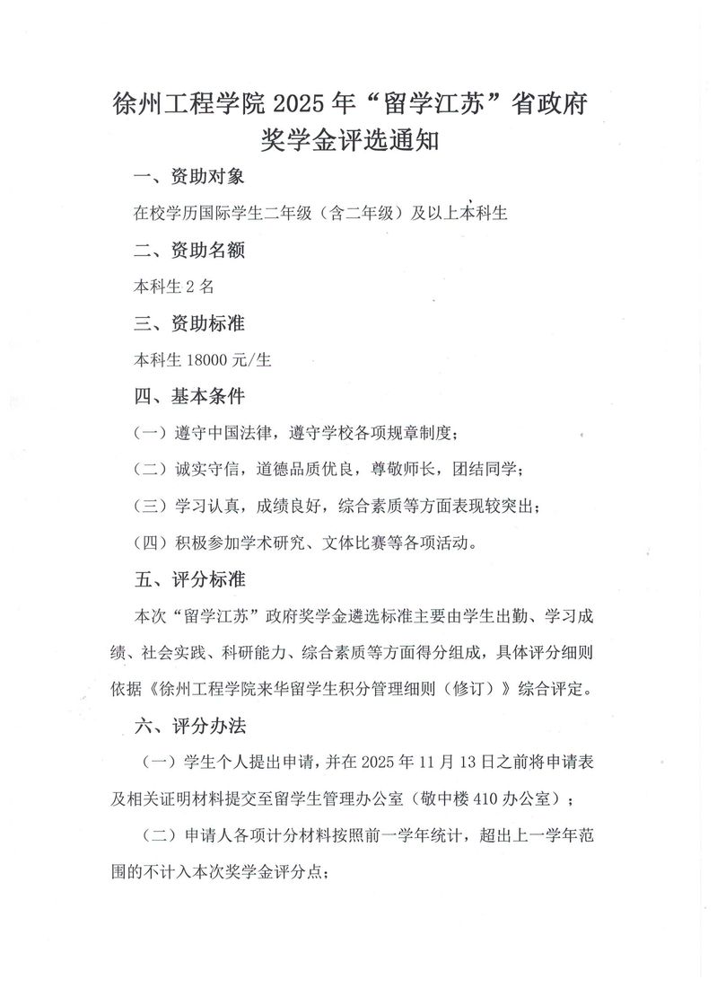 徐州工程学院2025年“留学江苏”省政府奖学金评选通知